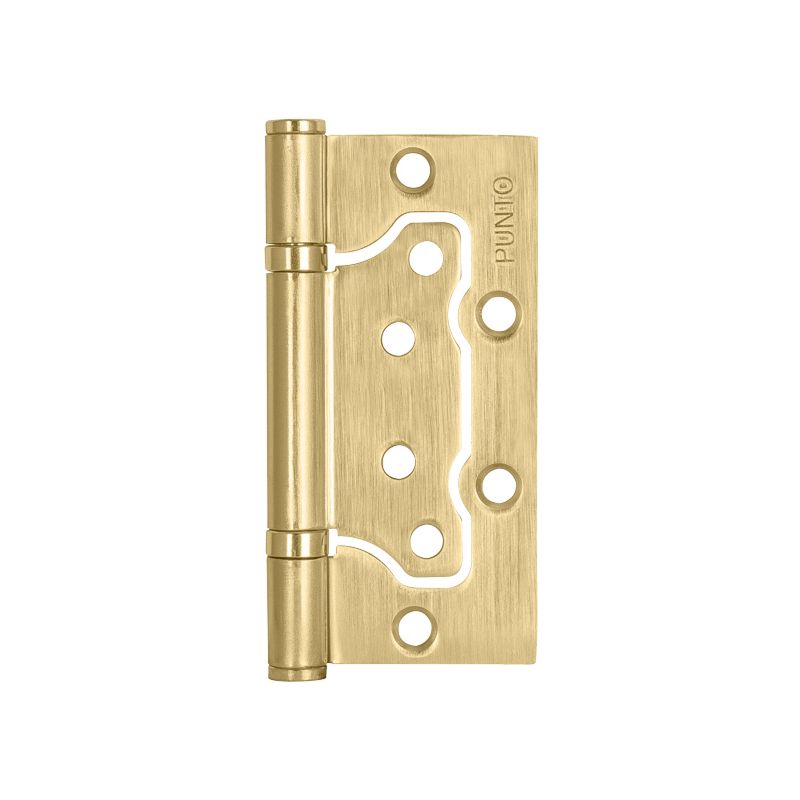 Универсальная дверная петля без врезки Punto 200-2B изготовлена из стали, подходит для дверей левого и правого открывания. Гальваническое покрытие прошло тест на устойчивость к коррозии в соляном тумане и соответствует 1 классу ГОСТ. В петле установлены втулка-подшипники и стальной стержень, что обеспечивает работоспособность 200 000 циклов открывания/закрывания. Максимальная нагрузка на 2 петли 30 кг, на 3 петли 40 кг. Размер петли: 100x2,5. Цвет: матовое золото. Саморезы в цвет изделия в комплекте.