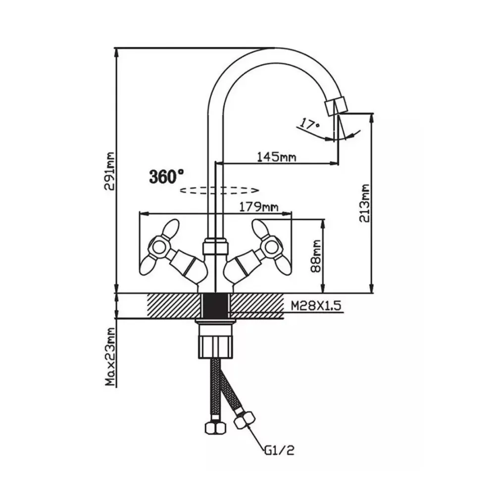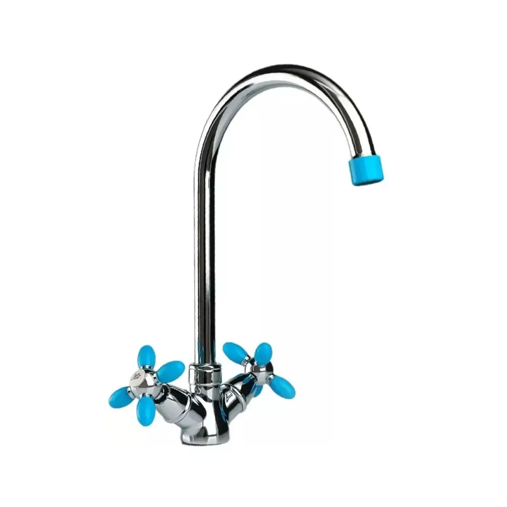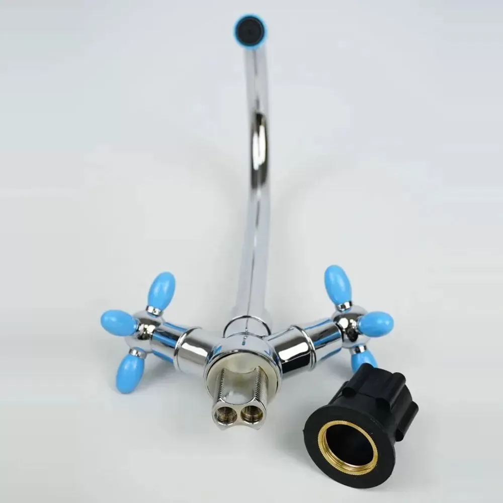 Смеситель для кухни двухручковый синий с хромом Potato Эверест B59-071D купить в Ярославле по низкой цене с доставкой