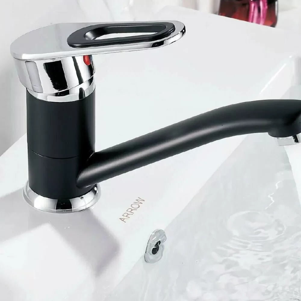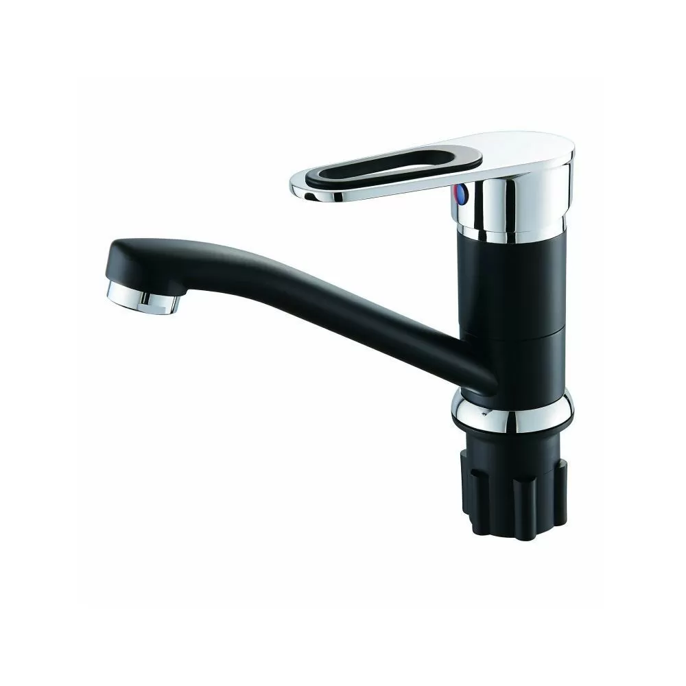 Смеситель для кухни монокомандный черный с хромом Potato Эверест B45-274F купить в Ярославле по низкой цене с доставкой