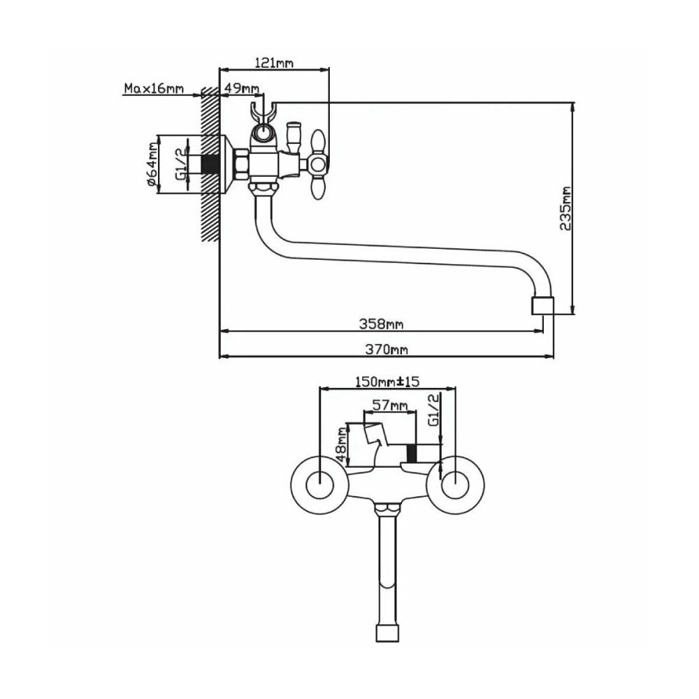 на два отверстия, настенные |