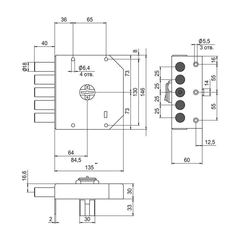 Бэксет (удаление ключевого отверстия),мм: 64